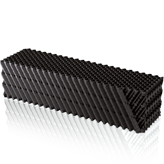 It is used in both counter-current and cross-flow applications. Scrubbers as they manages to ensure excellent water distribution, allowing maximum use of the contact surfaces, and increasing their performance. It also favor the distribution of the gaseous mixture from below.