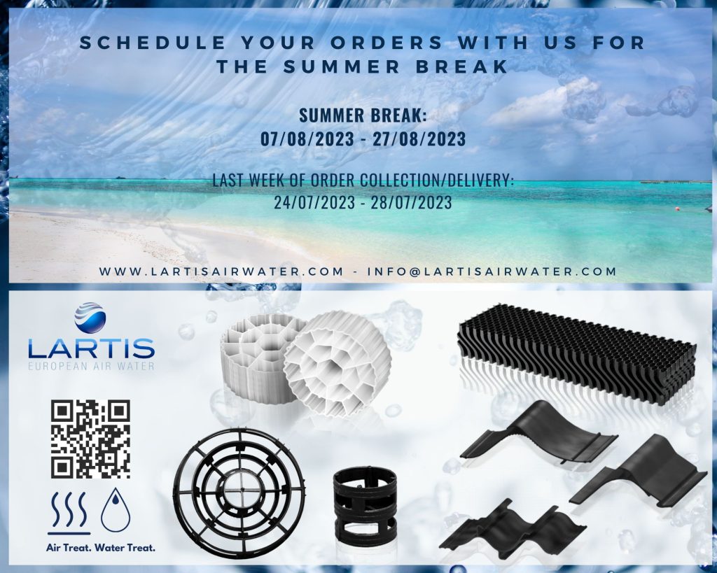 We remind you that within the range of Lartis products you will find: filters for air and water treatment, such as drift eliminator, structured packs, coalescence filters, humidifying panels, lamellar packs and many more, both in PVC and PP, available in STANDARD SIZE and CUT TO MEASURE according to your needs.